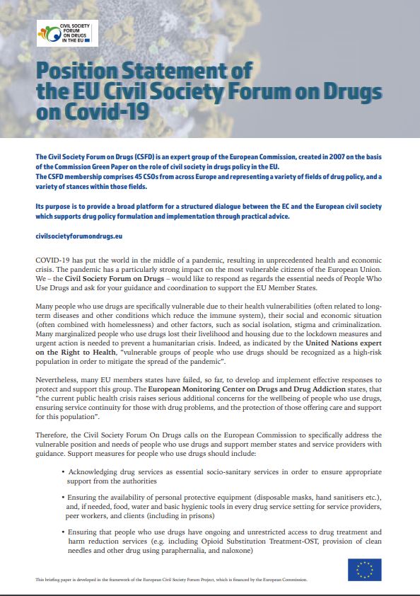 Position Statement of the EU Civil Society Forum on Drugs on Covid-19