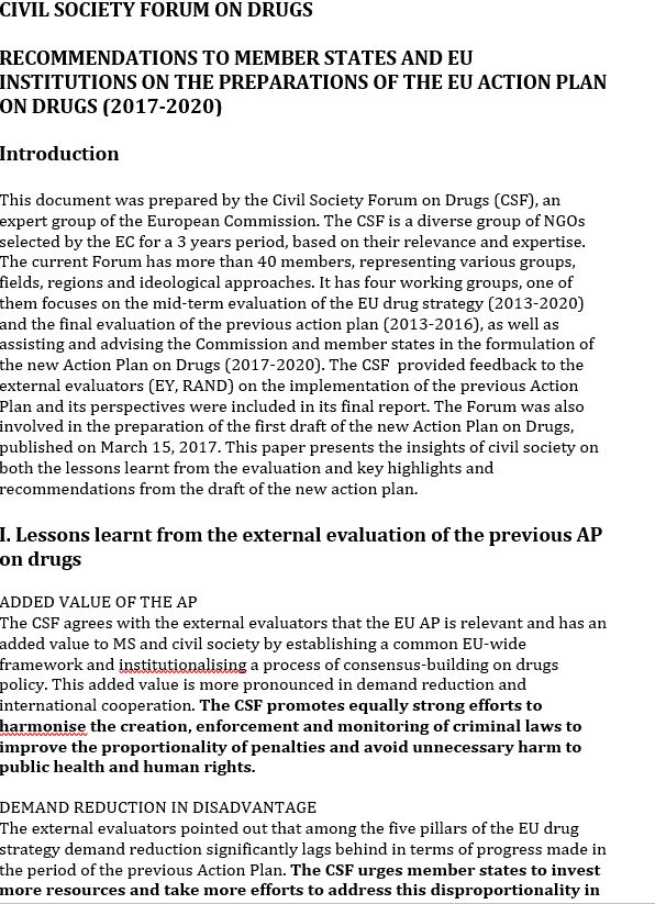 REPORT BY THE CIVIL SOCIETY FORUM ON DRUGS