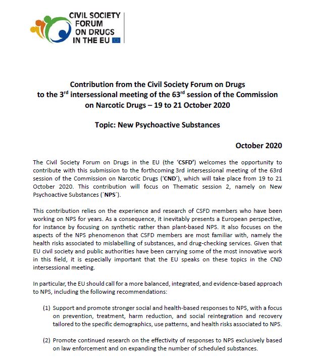 Contribution from the Civil Society Forum on Drugs to the 3rd intersessional meeting of the 63rd session of the Commission on Narcotic Drugs – 19 to 21 October 2020 Top